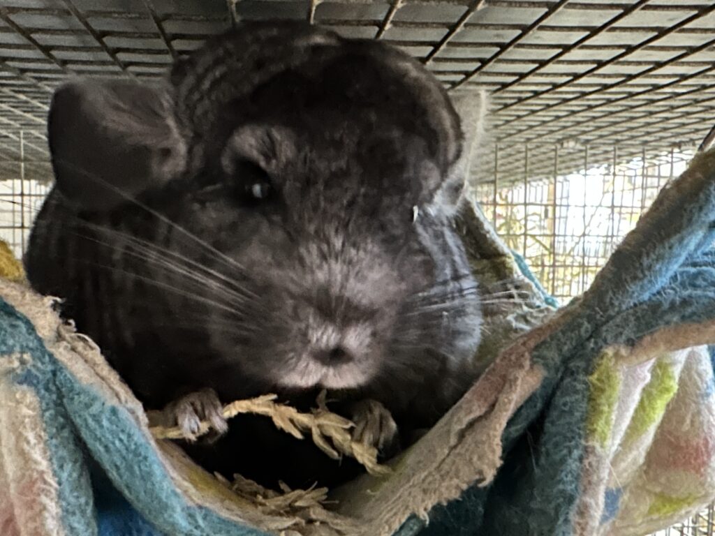 Griselda, an older female standard chinchilla
